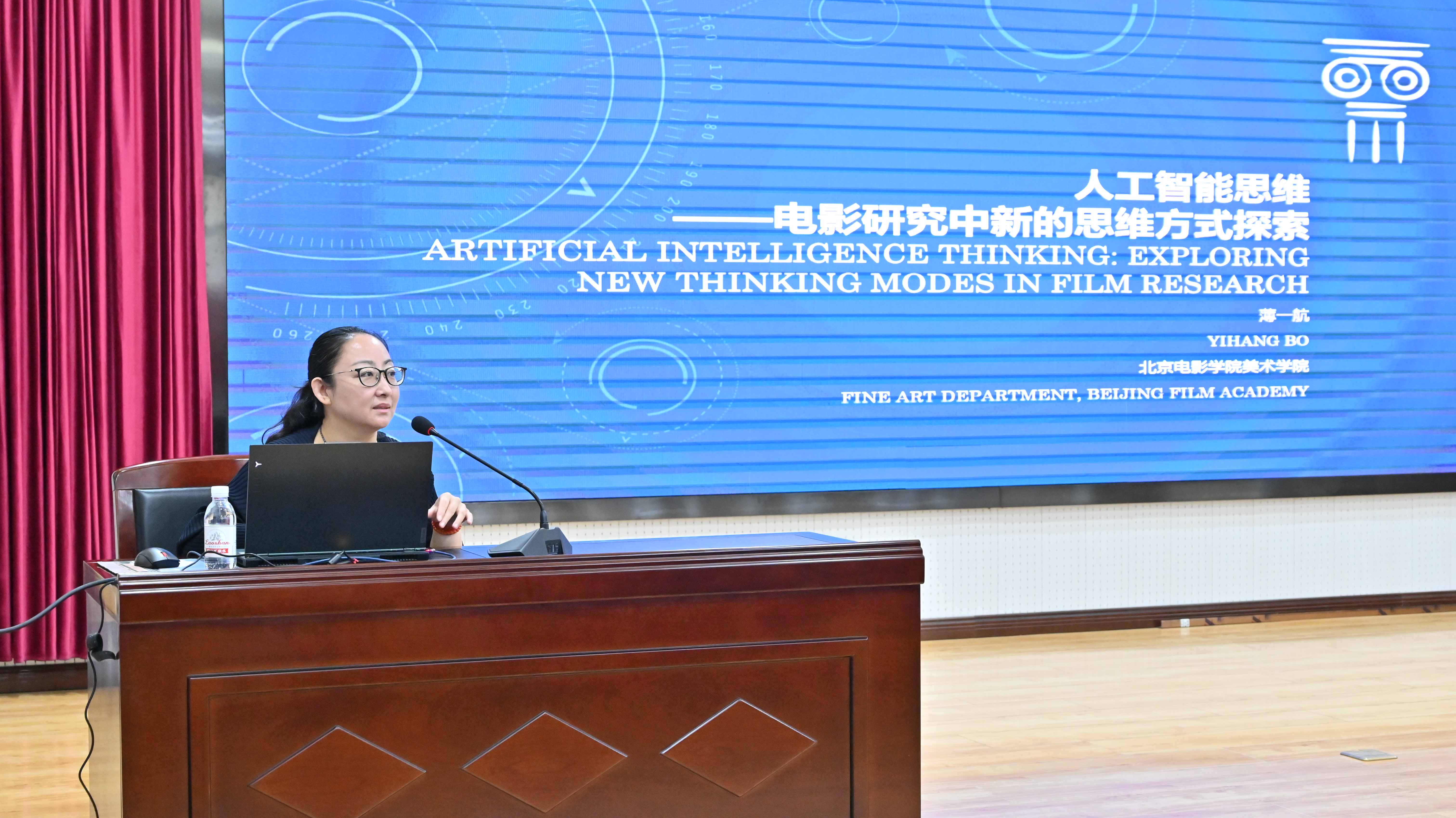 之后,北京电影学院美术学院副教授薄一航以其横跨工学与艺术的独特学术背景,作了题为《人工智能思维——电影研究中的思维方式探索》的专题报告,为现场师生带来一场兼具理论深度与前沿视野的学术分享。薄一航重点介绍了计算机视觉技术在电影研究与创作中的创新应用,包括通过图像识别、场景分析等手段对影片视觉风格进行量化研究,以及为艺术创作提供数据支持的具体案例。结合自身科研与教学实践,薄一航深刻阐释了在“新文科”建设背景下跨学科人才培养的紧迫性与实施路径。