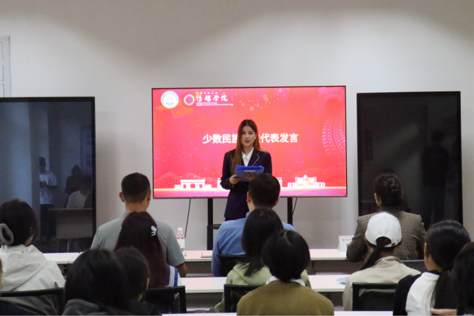 在交流分享环节,2023级本科生阿依西古·努艾力、苏比努尔·塔依尔、玉素甫江·吾麦尔三位少数民族学生代表依次发言,结合各自成长经历分享了学习实践心得。他们建议学弟学妹们要勇于走出舒适区,积极参与社会实践和支教活动,在服务奉献中拓宽视野;要勤于探索学习方法,通过聆听讲座、交流研讨明确发展方向,让成长路径更加清晰;还要敢于面对挑战,在独立生活中培养坚韧品格和协作精神。他们表示,将珍惜大学时光,练就过硬本领,未来为建设家乡、服务社会贡献青春力量。