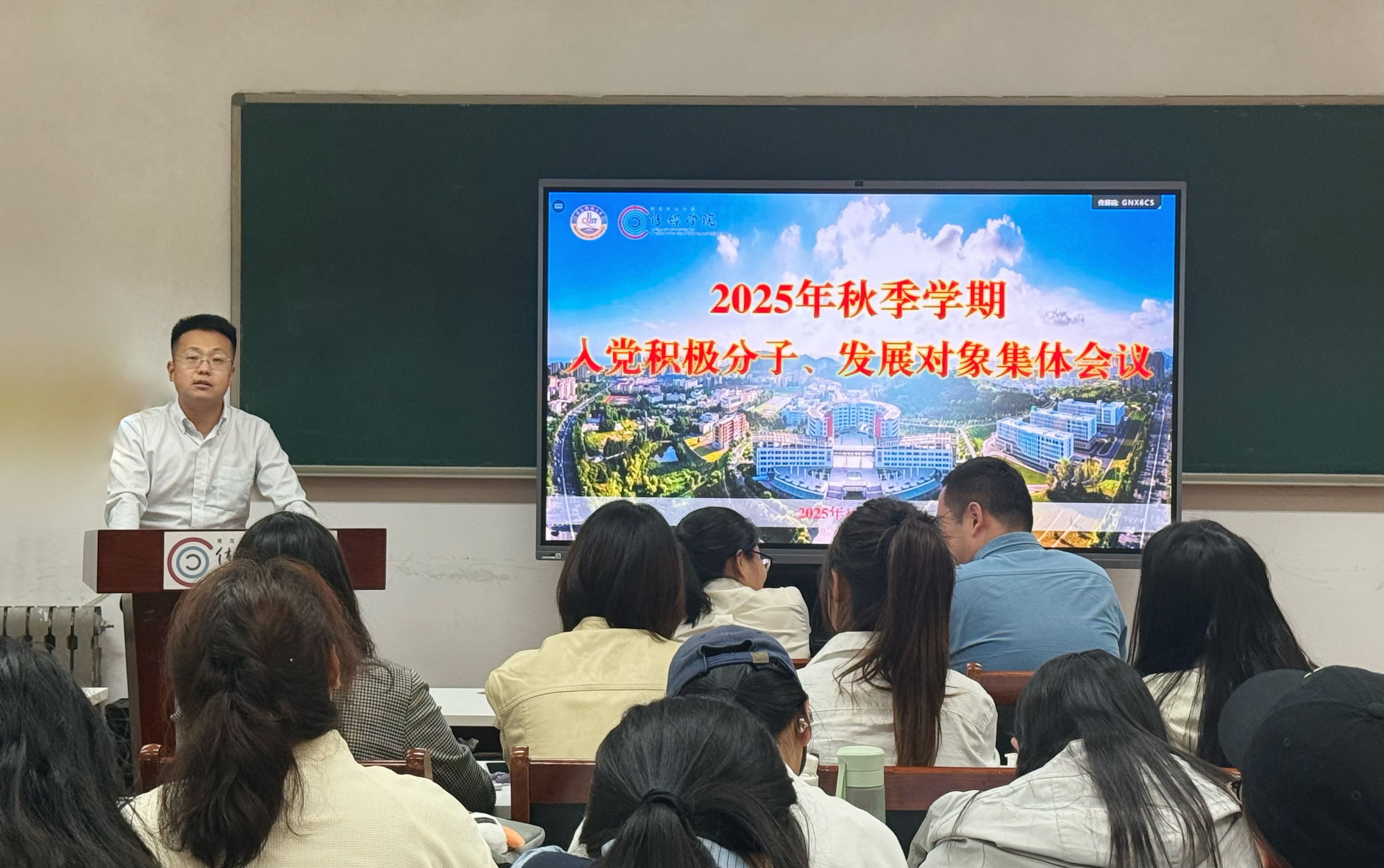 召开2025年秋季学期入党积极分子、发展对象培训会议。学院党委副书记兼副院长刘海波、学院团委副书记兼学工办副主任金莹莹出席会议,会议由辅导员刘福民主持。